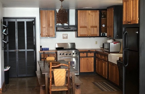 The house has an incredible master suite with en suite bathroom accessible through a small covered walk way. The other part of the house has the living room, kitchen, and other 2 bedrooms and bathrooms. There is a queen room with an en suite bathroom and a bunk room perfect for the kids with a hall bath accessible by all.