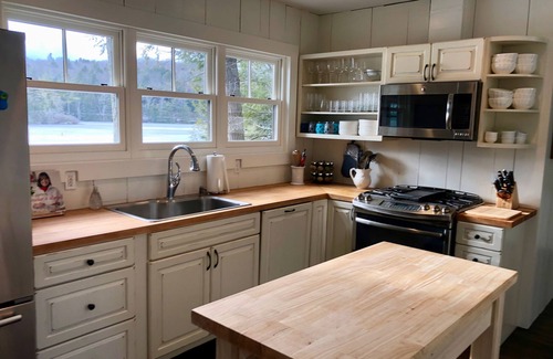 Twins Rock Cottage was built in 1941 and we are the third owners. We purchased the house in 2019 and it has been recently winterized and modernized, has a new kitchen, new washer and dryer, all new bathrooms, new gas fireplace, a NEST heating system with five zones, wifi boosters and three flat screen TVs. All the linens are new, as are virtually all of the plates, glassware and kitchen accessories. In the warm summer months, each bedroom has an air conditioning unit. All that said, we have tried to keep the campy feeling of a New Hampshire lake house.