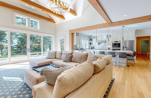 Incredible home on lake with views, private beach, deck, AC, & W/D | House in Plymouth