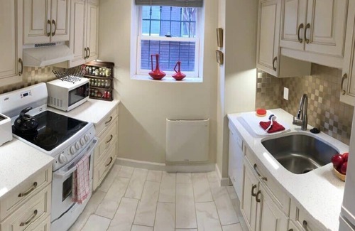 The ideal apartment for a business traveler or couple in town for a few days, and also perfectly suited for guests needing longer stays. We can provide a parking permit with advanced notice, allowing you to park one vehicle on the street without restriction.