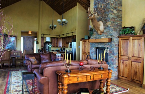 Stunningly decorated home with top of the line features and unsurpassed views. Western ambiance with exposed wood finishes and stone accents throughout. Wolf stove, Sub Zero appliances, Kohler bath fixtures, guest suite with kitchen, two master bedrooms, two fireplaces and large wrap around deck.