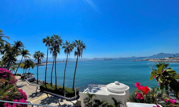 Incredible ocean front condo just steps to the beach in the magical Las Hadas area. Las Hadas is the safest and most iconic area of Manzanillo with its winding cobblestone streets, breath-taking views, and Mediterranean vibe. The condo has a fully equipped kitchen, extra bonus room, private washer/dryer, strong Wi-Fi, Alexa voice activated lights - blackout curtains - fan, and a large private terrace with amazing views! Enjoy the views from the terrace while relaxing to the sounds of the waves. There are two beaches (Playasol and Las Hadas), restaurants, and a heated pool. Perfect for a family or a romantic getaway. Weekly discounts available.