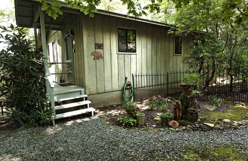 This precious rustic cabin on Line Runner Ridge is 3 miles out of Rosman (~10 miles from Brevard), off Hwy 178. This cozy 1Bed, 1Bath, 750 sq. ft. cabin is at an elevation of 3100 feet and, with its almost 180 degree amazing long-range view, overlooks Mount Pisgah and the Blue Ridge Parkway. It’s a perfect get-away for anyone who loves being in the middle of nature and the arts. Please be aware that we are 1.5 miles on a narrow gravel road that has 2 or 3 steep hills. Most 2-wheel cars/trucks have no trouble getting to the cabin. And, we promise you won't be disappointed! Feel free to contact us with any questions or concerns.