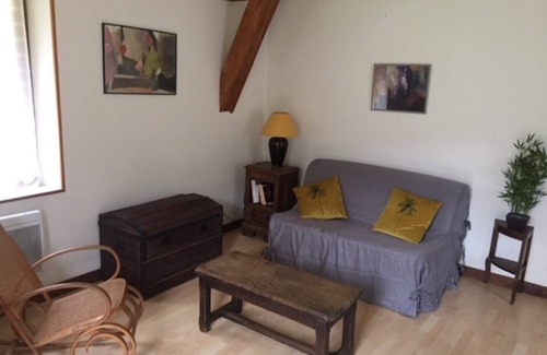 Riverside includes 1 living room with sofa BZ, 1 bedroom bed 140, 1 fully equipped kitchen, 1 bathroom, heating. Shaded garden, barbecue, garden furniture, garage, parking. Swimming pool, stadium, sport resort nature canoe kayak music room, cinema, shops