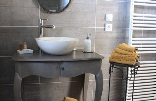 Vernon, (700 meters) residential district, bed and breakfast, with bathroom, and W. C. in the continuation (provided hand towels). The access to the room is independent of the house. You will have your own bunch of keys. You will have calms it and assured rest.