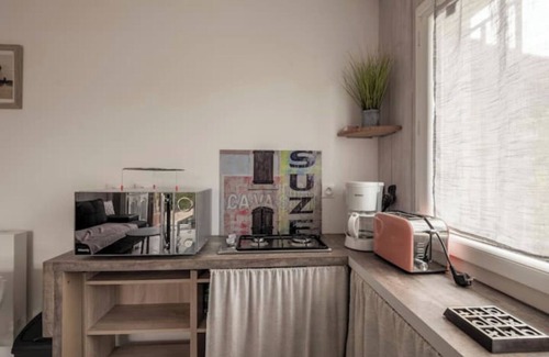 We organized and furnished this entire 30 m2 house to make it pleasant and convenient : a large living room with open kitchen with a window door overlooking the garden and pool, a terrace to enjoy the outdoors, a large bedroom with a queen-size bed, a bathroom with sink and walk-in shower, a separate toilet. To ensure maximum serenity if you have children, the pool is secured by a glass barrier and a door that meets safety standards.