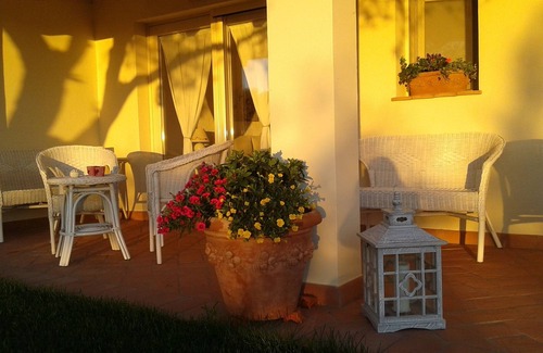 It is equipped with a French double bed and private bathroom. Sunny and fresh, it has an independent entrance with mosquito net, bathroom for exclusive use, outdoor patio overlooking the garden furnished with table and armchairs for moments of relaxation.