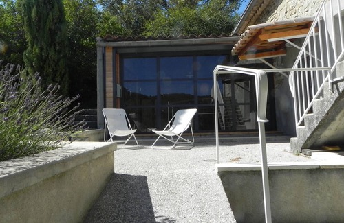 Restored house in a contemporary style with one floor in a quiet area on a plot of 5000 m², with views of the surrounding mountains of the Drôme Alps. Young truffle on the property. Pool fenced front of the house available from June.