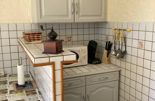 Independent kitchen of 10 m² with plenty of storage, washing machine, dishwasher, electric oven, microwave, coffee maker and espresso, fridge-freezer, kettle, toaster, food processor ....