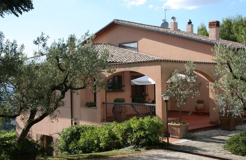 The Villa is located in the heart of Umbria, just a few kilometres from the region's main cities of art. It stands on the gentle hills overlooking Assisi, Spello and Perugia, in the middle of an olive grove carefully and respectfully maintained by the owner. In the large garden there is also a swimming pool (open from the beginning of May to the end of September; it measures 9 m x 5 m with a water height of 1.2 m). This house is particularly suitable for those who like to isolate themselves in total privacy without giving up the incomparable view. In fact, from the house it is possible to see some of Umbria's beautiful historic centres, starting with Bettona, a small medieval town (of Etruscan origin) that can easily be reached on foot. Of particular note is the central position with respect to the region's cities of art, all of which can be reached by car in between 10 and 45 minutes.