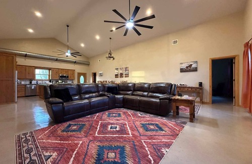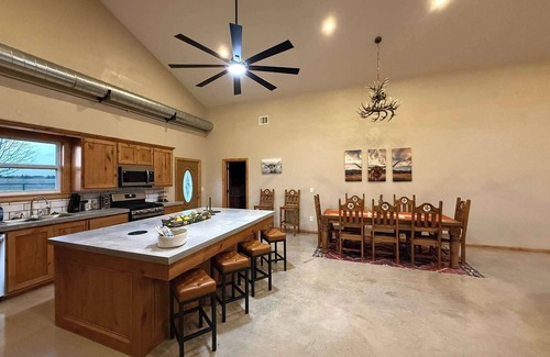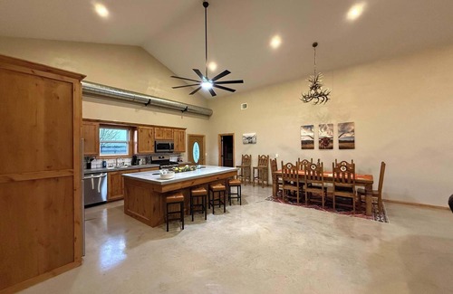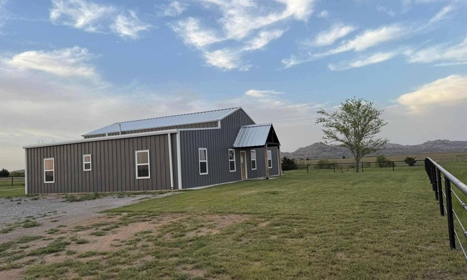 3BR, 2BA modern barndominium on acres of prime hunting land w/ views of the Wichita Mountains. Features a gourmet kitchen, open living/dining area, stone fireplace, & overlooking a pond. Minutes to the refuge entrance. Perfect for hunters, hikers, or families wanting comfort w/ wilderness out the back door. Prices determined by season, holidays, time of week, # of guests, & pets. Dogs only <35lbs.