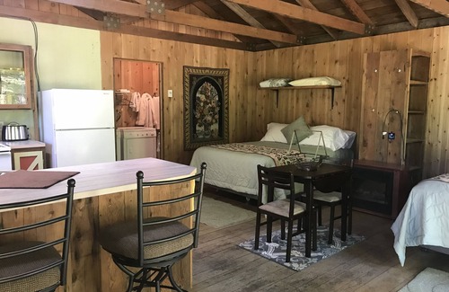 Cute studio cabin situated just off Highway 101, at the base of Mt. Baldy, one mile east of Lake Sutherland and 600 feet west of Granny’s Cafe and Indian/Emerald Valley Motel. The Spruce Railroad Trail is within walking distance (approximately two miles), and Joyce Access Road is just the other side of Indian Creek. Easy access to Marymere Falls, Lake Crescent Lodge, Sol Duc Falls, Hurricane Ridge, the Coho ferry to Victoria, B.C., and many more within a 45 minute drive radius. With two queen beds the cabin sleeps 4 adults very comfortably. It has a full kitchen, including dishwasher and microwave. There is also a washer and dryer set contained in the bathroom. It is the perfect spot for anyone who loves the outdoors.