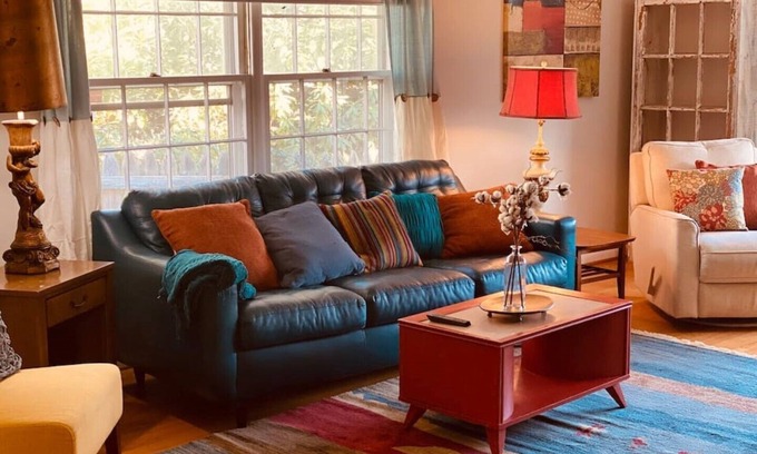 Come stay in this lovely spacious downtown home. You will feel right at ease and enjoy its open mid century modern style and relaxing outdoor areas! This 3BR 2BA home w/ sunroom w/ gas fireplace & extensive decking is the perfect place get away to & explore downtown Winchester. Walking distance to everything. Park & walk & enjoy nearby walking mall shopping/live music /art galleries/ Handley Library, Bike Run Walk on Green circle trail. Find me: Michele Bouve Hoffman on social media if need STR