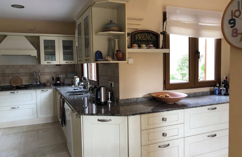 The villa is fully air-conditioned. The accommodation consists of one double bedroom (with en suite bathroom and walk-in shower) and two other bedrooms that can be used as twins or doubles. There is a separate bathroom and a guest toilet in the hallway. The kitchen is fully fitted with all modern appliances. There is a large lounge and separate dining room . We can supply a cot and fold up bed should it be required.
