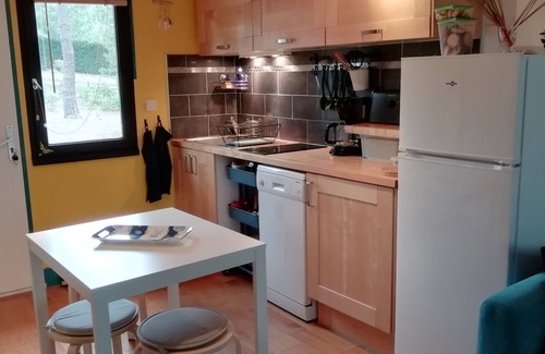 CHALET 3PIECES 37M², for 4 people who smells of pine, ideally located in the pine forest near the lake and near the ocean (4 km).