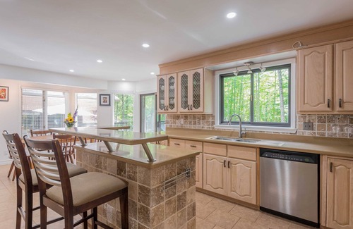 Imagine sipping your morning coffee while gazing out of a picture window, taking in the lush foliage, or indulging in an afternoon cocktail on our patio, which offers sweeping views of the expansive yard cocooned by majestic trees. We've got all the ingredients for your perfect getaway, whether you're a pool enthusiast, a billiards ace, a hiking fanatic, a water sports aficionado, a relaxation guru, a culinary wizard, a board game expert, an adventurer, or all of the above.