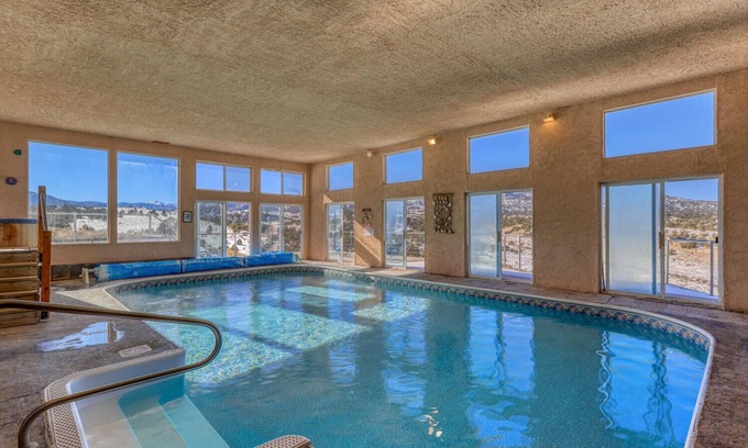 Indoor heated pool, hot tub, sauna with mountain views, wildlife and solitude is located in Del Norte. Indoor heated pool, hot tub, sauna with mountain views, wildlife and solitude provides accommodation, featuring Private Pool, Balcony/Terrace, Entertainment, among other amenities. This House features Private Pool, Balcony/Terrace, Entertainment, to make your stay a comfortable one.