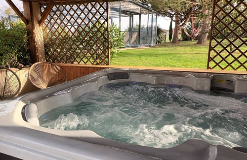Large garden 6000 square meters, shared pool access with the owners, covered heated from April 15 to October 01, depending on the weather, equipped with sunbeds, garden furniture, relaxation area, all you need to make your pleasant stay.