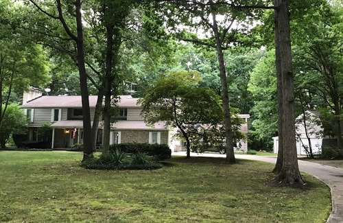The Cliffside Oar House is ready to welcome you aboard! This spacious, coastal/nautical-themed home sits on 2.15 wooded acres in a quiet cul-de-sac overlooking the scenic Vermilion River. Just 1.7 miles from the public boat/kayak/canoe launch and 2 miles from gorgeous Main Street Beach on Lake Erie. Picturesque Downtown Vermilion offers many dining, shopping, and entertainment options. The home has 6 bedrooms and 4.5 bathrooms, with plenty of room to spread out and relax! Over 4400+ sq ft complete with private 30x16 heated indoor pool. Two-story foyer welcomes you into the formal living room with decorative fireplace. Dining room with bay window showcases the park-like setting of the back yard. First floor bedroom with queen sized bed, attached private wheelchair-accessible bathroom with roll-in shower, raised sink, and grab-bars. Open kitchen with Jenn Aire cooktop, double wall oven, wine/beverage fridge, Keurig Duo (assortment of coffee/tea provided). Large family room with custom decorative spiral staircase, 2 story brick fireplace, skylight, 75 inch smart tv, and unique nautical oak overlook from second floor. Game room with standup/sit down arcade games, and card/dining table. Game room is connected to the indoor pool room. The pool room is stocked with games, goggles, and towels. PLEASE NOTE—we do not provide floats/life jackets. Ample lighting (disco lights!) for night swimming, and attached Jack and Jill half bath. Second floor offers 5 large bedrooms and 3 full bathrooms. Master bedroom with king canopy bed, decorative fireplace, and en suite. 3 additional upstairs bedrooms ALL with king beds and Keurig coffee makers. Upstairs kids’-themed bedroom with 2 sets of bunk beds, and reading/lounging alcove with lots of pillows! Pets are welcome (must be leashed at all times when outside). Large driveway with plenty of room for cars, boat trailers, and pull-behinds.