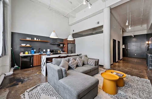 Come and relax in our new location! This historic warehouse was converted into apartments but still holds its original architectural features! Enjoy the industrial modern aesthetic with 15-foot-high ceilings, brick walls, original concrete floors, and atrium skylights with natural light. These units come fully furnished and most have full kitchens and all your required accessories for you to just drop your suitcase and start relaxing. **NOW PET FRIENDLY-$50.00 PET FEE PER STAY**