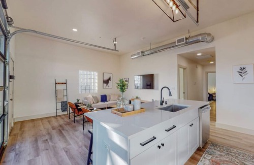 As you step inside this industrial style condo, you’ll be greeted by the high ceilings, open and airy floor plan, and exposed ductwork. Open the full-size garage door that leads to the private patio and experience the indoor / outdoor living that this condo offers. The string-lit patio is the ideal spot for sipping morning coffee or enjoying cocktails in the evenings. If you’re seeking a unique Airbnb experience close to the best Albuquerque has to offer, you've come to the right place.