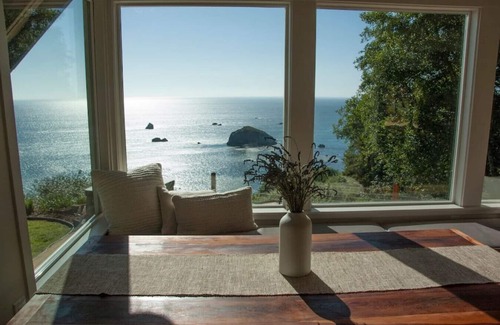 Welcome to The Wind and Tide where forest meets sea. Our newly remodeled home is situated on three acres of forested cliffside overlooking the Pacific, just north of the seaside village of Trinidad. Tranquility awaits as you take a dip in the hot tub and relax by the fire pit, soaking up the sounds of sea lions, the views of migrating whales, and sunsets and stargazing galore. Tide-pooling, agate hunting, and exploring Sue-Meg State Park is just a short drive down the road.