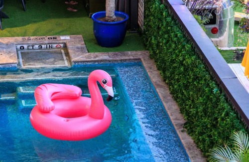Yes, this East Cesar Chavez house has a swimming pool. Check the Facility Overview section for details about the pool and other available facilities.