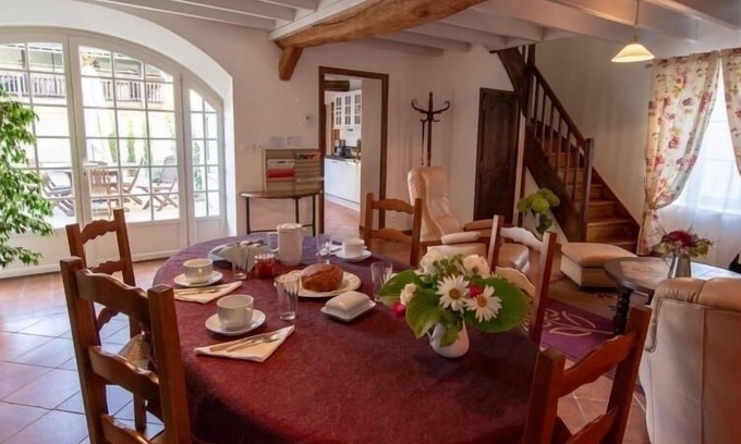 Treat yourself to a quiet break 1 hour from Paris, to rediscover the little pleasures of life, quiet moments, with family or friends, in a rural setting, in this refined renovated cottage in an old 17th century residence. , in the heart of the village. Its large garden, its seasonal swimming pool (available from April 1st depending on sunshine and weather) covered. The house is ideal for large families. Courcelles is easily accessible by the A. 19, near the castle of Chamerolles, the forest of Orléans, Yèvre-Le-Châtel classified as the most beautiful village in France. Ground floor: large living room-dining room, kitchen, 1 large bedroom (1x140), shower room with wc. Upstairs: 2 bedrooms (1x140), 1 bedroom (2x90), bathroom, separate wc. Heat pump heating. Washing machine and dryer in outdoor room. Garage. A shared covered and heated swimming pool (L 14 x W 4.7m x D 1.5m) is available from 10 [hidden] to 12 [hidden] and from 2 [hidden] to 7 [hidden] (available from April 1, depending on sunshine and weather). 2 bicycles available. Bail. Business seminar possible on site. Sheets provided and beds made on arrival, towels included, electricity and heating included. Compulsory cleaning fee 120 euros. Unless stated, services such as cleaning, bed linen, towels etc. are not included in the price of this rental. If pets are allowed (information in the advertisement), charges may be applicable. Only equipment mentioned in this advertisement are present. Equipment not mentioned are not considered to be present.