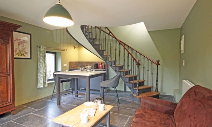 Ground floor: Living room with - kitchen area (2-burner hob, combined microwave oven, small fridge, separate freezer, Nespresso coffee maker, kettle, toaster, blender), - dining area - lounge area with sofa, armchair, TV, - wc with washing machine and washbasin. Upstairs: - 1 bedroom with 1 double bed 140x190cm, - adjoining shower room. Cot and high chair available. The living room is arranged around a magnificent staircase restored and adapted to become the centerpiece of this charming little cottage. Excellence in materials and a search for well-restored old details highlight this old farmhouse which dominates the Durdent valley and captures the sun all day long. This cottage is rented during school holidays, in addition to the large neighboring cottage, with which it can communicate (gîte G2341 for 8 people). Outside school holidays, it can be rented alone and will then have no neighbors. Rental charges not included in your rental: - electricity billed at cost price according to consumption beyond 8kwh/day), - heating, - Household chores, - bathroom linen, - the tourist tax. Television, Electric heating, Baby bed, Sheets provided, Household linen, Internet connection, Private car park, Washing machine, Cleaning fee, Garden, Microwave, Flat screen TV, Freezer, Garden furniture, Barbecue, Detached house. Option to be paid on site: Household linen kit (towels): €5. Unless stated, services such as cleaning, bed linen, towels etc. are not included in the price of this rental. If pets are allowed (information in the advertisement), charges may be applicable. Only equipment mentioned in this advertisement are present. Equipment not mentioned are not considered to be present.