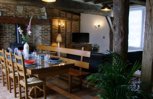 Ground floor: - living room (flat screen TV), - kitchen (oven, microwave, induction hob), - scullery/cellar (additional fridge, washing machine, dryer), - 1 bedroom (1 double bed 160x200cm) with shower room, - wc. 1st floor: - 1 bedroom (1 double bed 160x200cm), - 1 bedroom (2 single beds 90x190cm), - 1 bedroom (1 double bed 140x190cm, 1 single bed 90x190cm), - shower room, - wc . Internet Non-smoking cottage. Electricity extra (between 10 and 18€/day in winter). Umbrella bed and baby chair. Large terrace and enclosed garden in an open space with unprotected pond and well. SHEETS INCLUDED AND BEDS MADE This beautiful house completely renovated in ecological materials is located in a haven of peace in the middle of a small hamlet. Its south-facing terrace opens onto an enclosed space of around 150m². You can approach some animals: peacocks, horses, donkeys and swans roaming free around the owners' large open pond. The beautifully renovated half-timbering inside and the well-preserved nature outside will invite you to rest and calm down. Rental charges not included in your rental: - heating (payment of electricity after meter reading on arrival and departure beyond 8kwh per day), - wood (€3 per basket - 1st basket free), - bathroom linen, - Household chores, - the tourist tax. Bedroom(s) on the ground floor, Enclosed garden, Television, Electric heating, Wood stove, Baby bed, Sheets provided, Internet connection, Private parking, Washing machine, Dishwasher, Linen hire, Cleaning fee, Pets on site, Terrace, Animals accepted, Tumble dryer, Microwave, Flat screen TV, Freezer, Garden furniture, Barbecue, Detached house. Option to be paid on site: Cleaning charge: €45. Household linen kit (towels): 2.5 €. Unless stated, services such as cleaning, bed linen, towels etc. are not included in the price of this rental. If pets are allowed (information in the advertisement), charges may be applicable. Only equipment mentioned in this advertisement are present. Equipment not mentioned are not considered to be present.