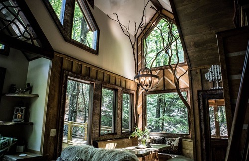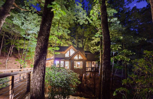 This gorgeous three story Blue Ridge TREEHOUSE we call "INN THE RAVINE" is located in the ASKA ADVENTURE AREA and is unlike any property you’ve ever seen. Meticulous architectural and designer details abound in this 750 sf property with decks from every view. LOCATION LOCATION LOCATION….This Treehouse is perfectly perched on 4 private acres overlooking National Forest with direct hiking access to the Benton MacKaye Trail right outside your door. Next to you is our other Treehouse call Canopy Blue (in case you'd like to share the experience) Inn The Ravine Treehouse is secluded and private with an easy 10 minute drive to Historic Downtown Blue Ridge. Please note that the last 1/4 mile of the dirt/gravel road, can get very bumpy and rutty at times. Low profile vehicles not recommended; however, four wheel drive not necessary either.
