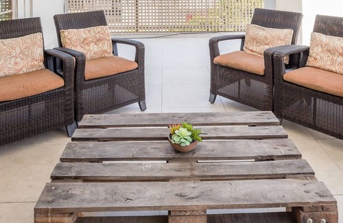 You'll have everything you need within easy reach. An open plan living area, outdoor space for al fresco dining, air conditioning, two bedrooms, and a dedicated working space. The master bedroom features a Queen bed, while the second bedroom has two Single beds, comfortably hosting up to four guests.