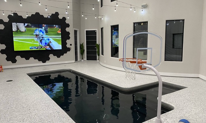 Insane Indoor Pool with Basketball, 132" TV Wall, Pool Table, Foosball, Ping Pong: The Ultimate Wedding Accommodation