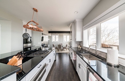 The kitchen is oversized with two large refrigerators, two dishwashers, gas stove, double ovens, and warming drawer. There is also a private outdoor grill available for use. Everything you need to prepare Thanksgiving or Christmas dinner will be at your fingertips. Turn up the whole home Sonos Sound System while soaking in the view.