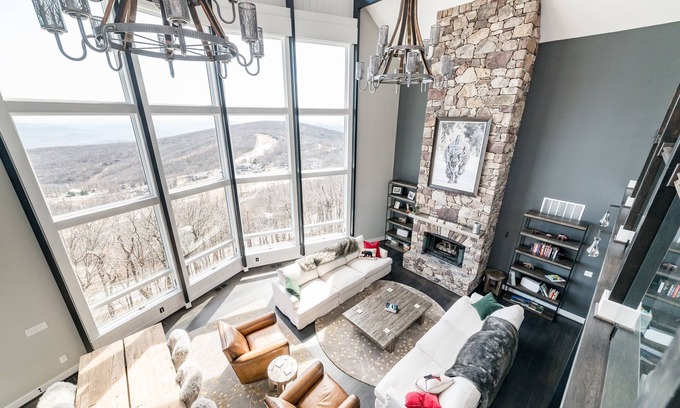 One of the largest homes in Wintergreen with 7 bedrooms and 10 bathrooms. The floor-to-ceiling windows offer a sunrise experience that is simply majestic. The open floor plan provides a gathering area for both large and small groups. The stacked field stone fireplace spans 40 feet high and accents the central area for an incredible mountain escape. The home has been meticulously renovated from top to bottom.