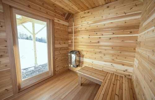 Brand spanking new!! “Kloki” for Lil’ Clock!! Located in a HUGE field of rolling hills. Very private with new hot tub and sauna! It got its name from the round windows we saved from an old church that look like Cupid clocks! Brand new hot tub and sauna right out your door!! Stratton mnt view from the porch. We are 5 min to Magic and 10 to Bromley! Ski our trails or roam the property! We sit on 100 acres of heavenly woods and hills, perfect for stargazing in a clear night! Excited to host you folks!! Follow @bentapplefarm
