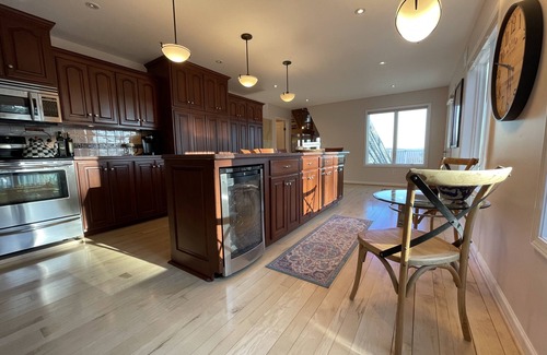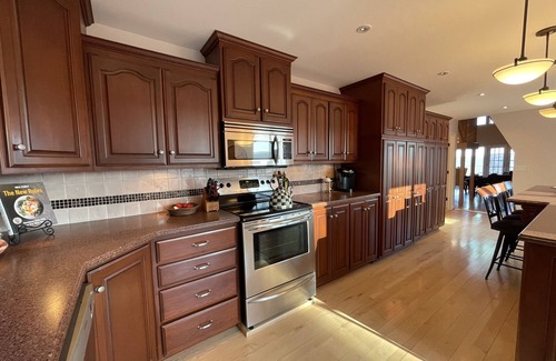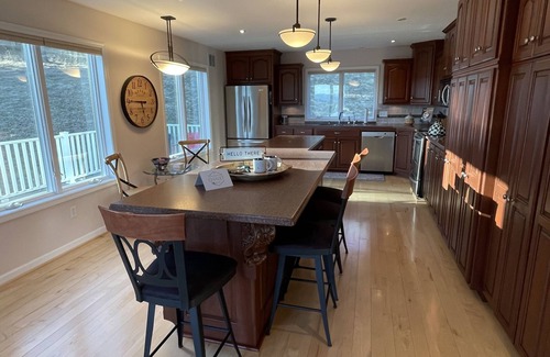 - Well-Equipped Kitchen: The home chef will appreciate the well-stocked kitchen and large gathering island, perfect for preparing meals and entertaining guests during your stay.