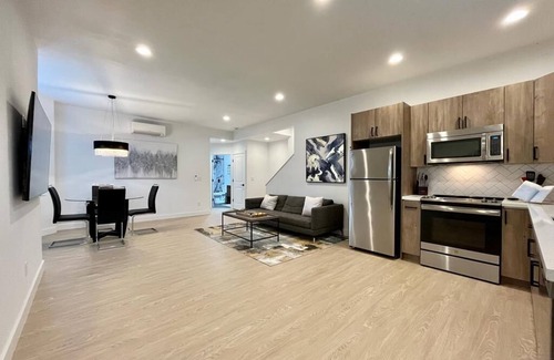 Discover contemporary comfort in this urban retreat with AC and fast WIFI. You will not want to leave! We invite you into a stylish haven with modern and luxurious finishes and thoughtful design. The open-concept, high ceiling, living space and kitchen greets you at the front door. 1 Bedroom (King Bed) on ground level and the 2nd Bedroom (Full bed) upstairs. There is 2nd living room upstairs and a private office to work! Great location! Mins away from the mall, stores, restaurants, and highways!
