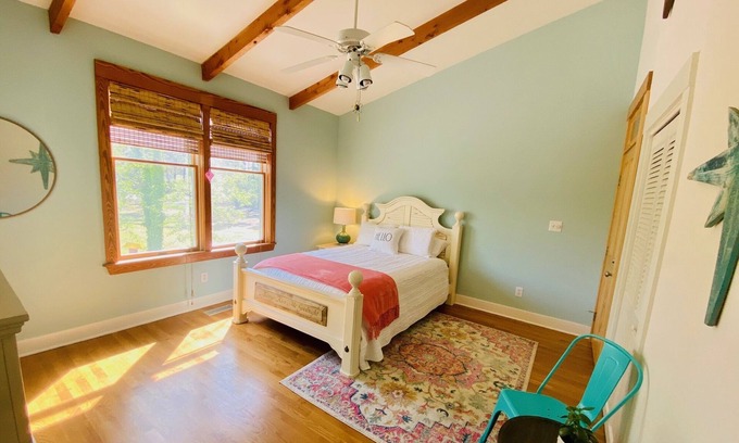 Instaworthy sunsets and views from the private backyard dock. Private room with bathroom and private entrance in a beautiful Nags Head style, cedar shake house on a one-of-a-kind, gorgeous soundfront lot. Located on the newly improved bike path, this home is just a short bike ride from the Atlantic Ocean and the Wright Brothers National Memorial. Bring your stand up paddle board or use our kayaks to launch off the dock, or enjoy fishing and crabbing without having to drive anywhere!