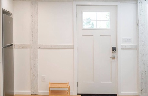 Dwell beyond the ordinary! The Tobacco barn suite is the place for couples to escape. It boasts two floors. The first floor offers a sitting area with a 55 inch tv, bar height table, stunning custom kitchen and washer/dryer. It has a spiral staircase that leads up to the 2nd floor that offers a king size bed with a large walk in shower.