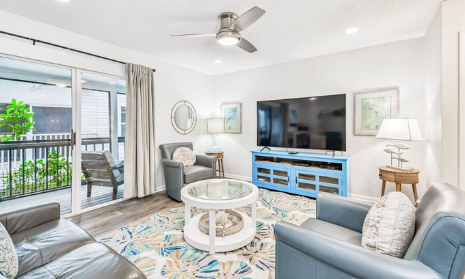 NEW! Discover the perfect blend of relaxation and adventure at this vibrant 2-level intracoastal condo, tucked away in a peaceful complex just a 4-minute walk to the sugary sand beach. Unwind by the pool or take a short walk to the beach for a day in the sun. The private dock offers a chance to fish or simply spot dolphins, manatees, or schools of fish passing by. For those bringing their pup along, this dog-friendly retreat makes it easy to travel with your pet. The garage is stocked with all the beach essentials you may need, including a wagon, chairs, kayaks and paddleboards. Inside, the condo features bright coastal decor and modern furnishings designed for your comfort, Smart TV's in each room and thoughtful furniture that doubles as remote work desks in the living room and primary bedroom. Whether you’re here to relax, explore, or a little of both, this home offers the perfect base for your getaway.