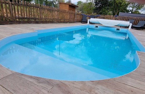Yes, this Saint-Ovin house has a swimming pool. Check the Facility Overview section for details about the pool and other available facilities.
