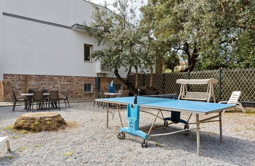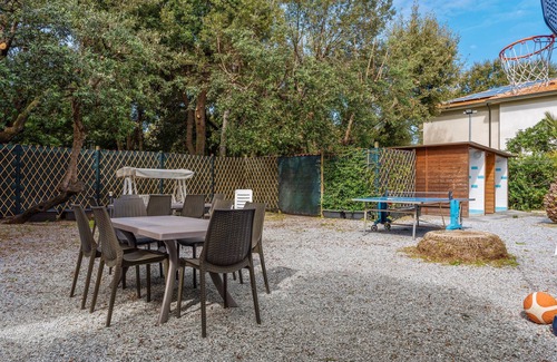Surrounded by greenery, it is surrounded by a large private garden of 1200 sqm fully fenced and with 4 parking spaces. For a complete relaxation you can have tables and chairs, barbecue, deckchairs, ping-pong table, children's games and two outdoor showers with hot water: large spaces are available both inside and outside the living room pets are allowed.