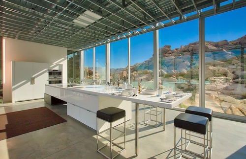 Featured in countless music videos, television shows and dozens of publications worldwide (including Netflix, Robb Report, Architectural Digest, Washington Post, People, Daily Mail, Dezeen, and Maxim), this sleek 5,500 sq. ft. minimalist retreat is set on 90 breathtaking acres comprising the largest privately-owned parcel of land abutting Joshua Tree National Park.