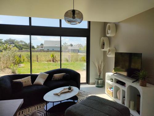 30 miles from La Cite de la Mer in Port-Bail-sur-Mer, Invitation Bord de mer à Portbail offers accommodations with access to a hot tub. This beachfront property offers access to free Wifi and free private parking. The accommodation provides a shared kitchen and a concierge service for guests. Providing a terrace and garden views, the spacious vacation home includes 3 bedrooms, 3 living rooms, flat-screen TV, an equipped kitchen, and 2 bathrooms with a walk-in shower and a hot tub. Towels and bed linen are provided in the vacation home. The property has an outdoor dining area. Guests can make the most of the warm weather with the property's barbecue facilities. Guests at the vacation home will be able to enjoy activities in and around Port-Bail-sur-Mer, like walking tours. Outdoor play equipment is also available at Invitation Bord de mer à Portbail, while guests can also relax in the garden. Marais du Cotentin et du Bessin Natural Regional Park is 26 miles from the accommodation, while Côte des Isles Golf Course is 5.1 miles away. Caen–Carpiquet Airport is 67 miles from the property.