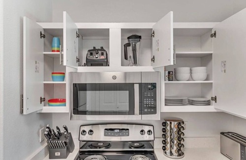 Catch your favorite show in our breezy, light-filled living room showcasing a 55" 4K Ultra HD TV equipped with Roku apps, cradled by sumptuous seating. Revitalize your senses with a scrumptious home-cooked meal whipped up in our state-of-the-art kitchen. Outfitted with modern appliances and all necessary culinary basics, this kitchen is a dream come true for any culinary enthusiast.