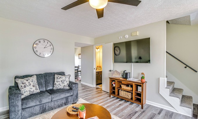 Experience the lively ambiance of Bowling Green at this 2-bedroom, 1.5-bath vacation rental! Complete with a well-appointed interior and a private backyard patio, this townhome provides the perfect spot to relax after a day of exploring the city. Make the short journey to the Lost River Cave or tour the Western Kentucky University campus if you're a prospective student. Wrap up the day by preparing a home-cooked meal in the fully equipped kitchen and have a movie night in the cozy living room.