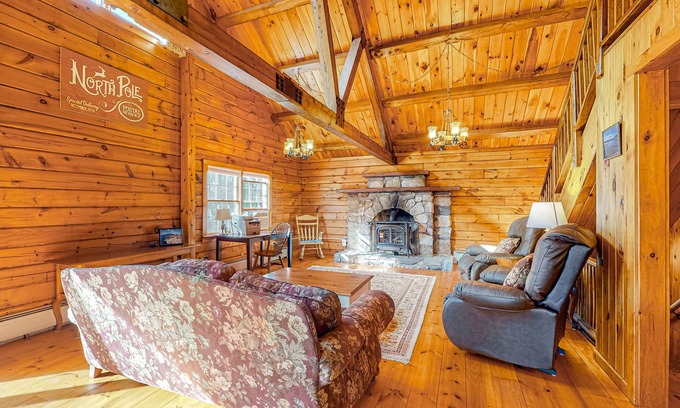 Escape the everyday and experience the extraordinary when you make this countryside cabin your next vacation destination. This custom log cabin is nestled in the pines and offers peace and tranquility away from the humdrum of everyday life. Terrific ski slopes await at Cannon Mountain and Loon Mountain, with great hiking trails all around. Tour the area and discover delightful attractions like Jerry Jam, the Bath Covered Bridge, Kilburn Crags, the Rocks, the Maplewood Golf Course, Hatchland Farm, and Schilling Beer Co all within an 18-mile radius. Santa's Village is within 32 miles and offers plenty of holiday-themed fun.