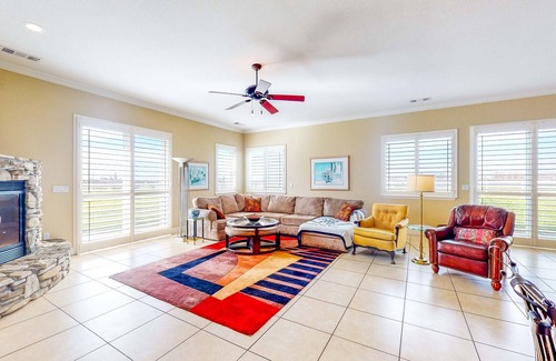 Upon entry, you'll be met with a bright interior and a cozy atmosphere filled with natural light. The home boasts new interior finishes, and comfortable new furnishings, with plenty of seating and artistic decor. The sophisticated kitchen offers modern appliances, granite countertops, and a floating island breakfast bar and is open to the formal dining area with an expansive dining table. Comfortable beds in spacious bedrooms ensure that everyone will receive a wonderful night's sleep from the day's activities.