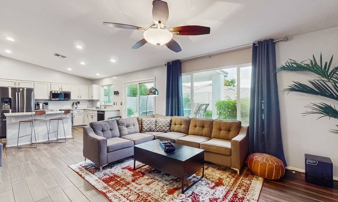 Are you looking for the perfect home away from home for your next escapade with family and friends? Then, look no further than this welcoming home located 22 miles from all the hot spots in downtown Phoenix! This peaceful home is located in a quiet neighborhood with several parks and restaurants nearby as well as great attractions, including Goodyear Ballpark, Bullard Wash Park, Loma Linda Park, Festival Fields Park, Verrado Golf Club, and Estrella Mountain Regional Park.